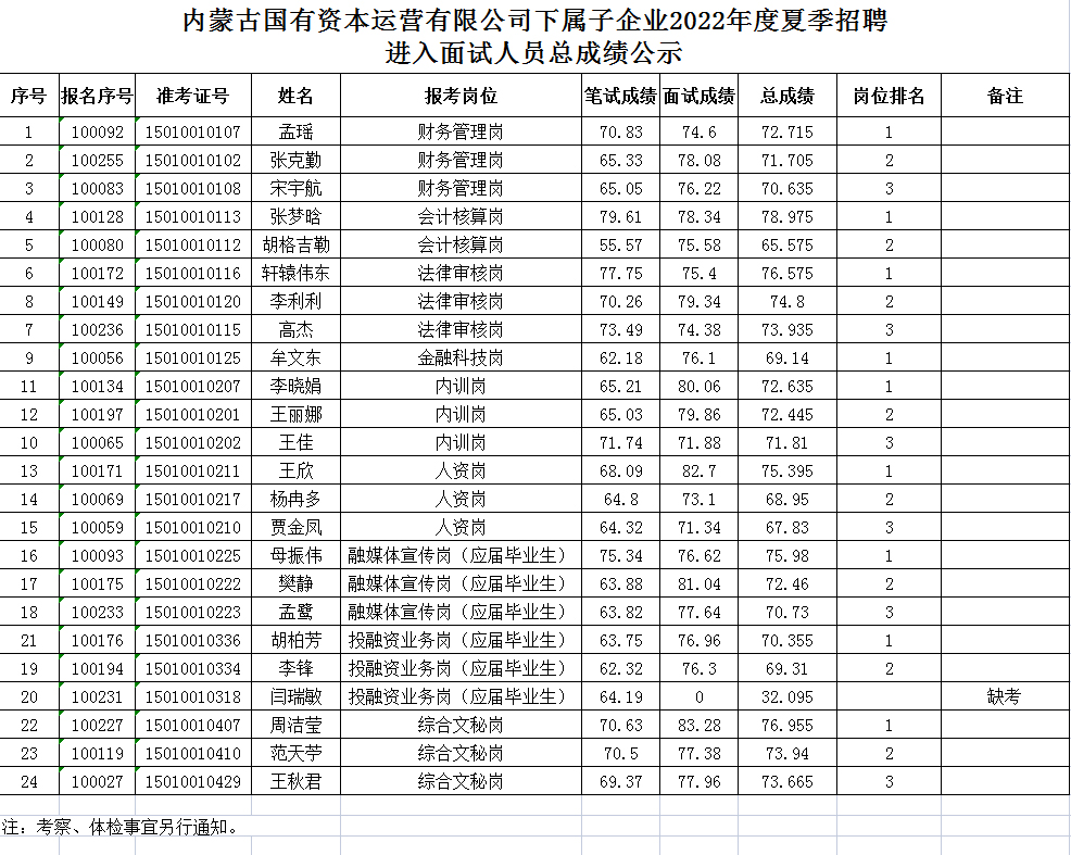 附件:爱体育登录入口下属子企业2022年度夏季招聘总成绩公布